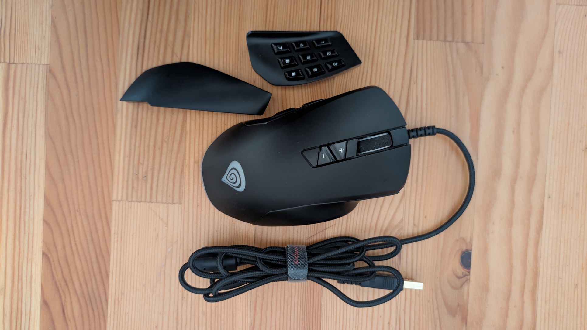 Vezetékes, USB-s, optikai, cserélhető oldallapjai vannak (moduláris), amivel 14 gombja is lehet (MMO gombsor) és 10200 DPI érzékenységű.