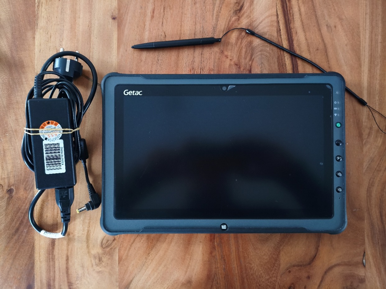 Alig használt, nagyon szép állapotban. Keveset, csak ~1870 órát futott. A képernyővédő fólián látható némi használat, illetve itt-ott szorult alá levegő, de a kijelzőn nem észleltem pixelhibát. Adok hozzá gyári töltőt, és passzív ceruzát. Sajnos ez utóbbit külön vásároltam. Ugyan eredeti Getac és szépen működik, de vastagabb mint ami a tablethez való, így nem javaslom a tartójába beleerőltetést. (Egyszer megpróbáltam, sikerült is, de annyira feszült, hogy többször nem próbálkoztam.)
