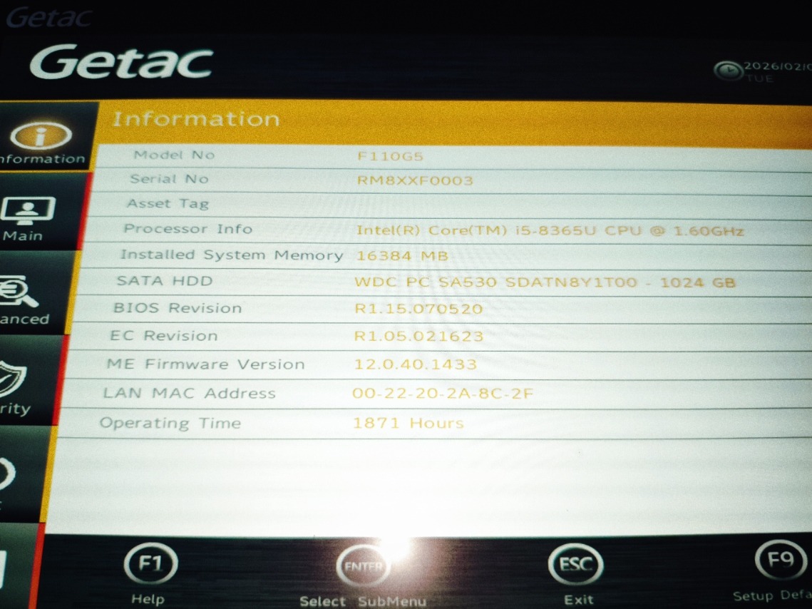 Getac F110 G5 Strapa tablet PC Windows11-el 11,6" i5-8365U, 16GB, 1TB M.2SSD, GPS, LAN, BT