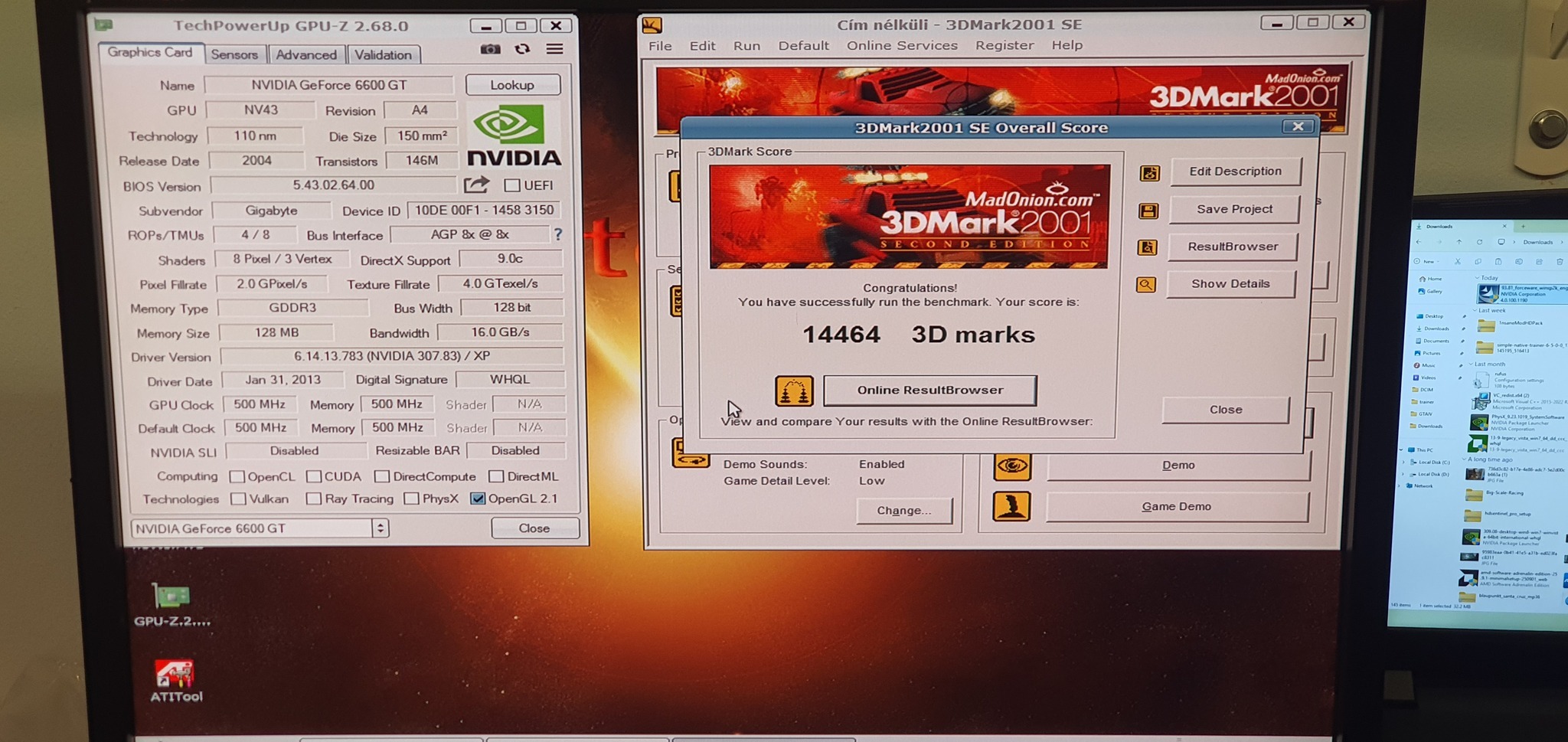 3Dmark01 alatt többször tesztelve.