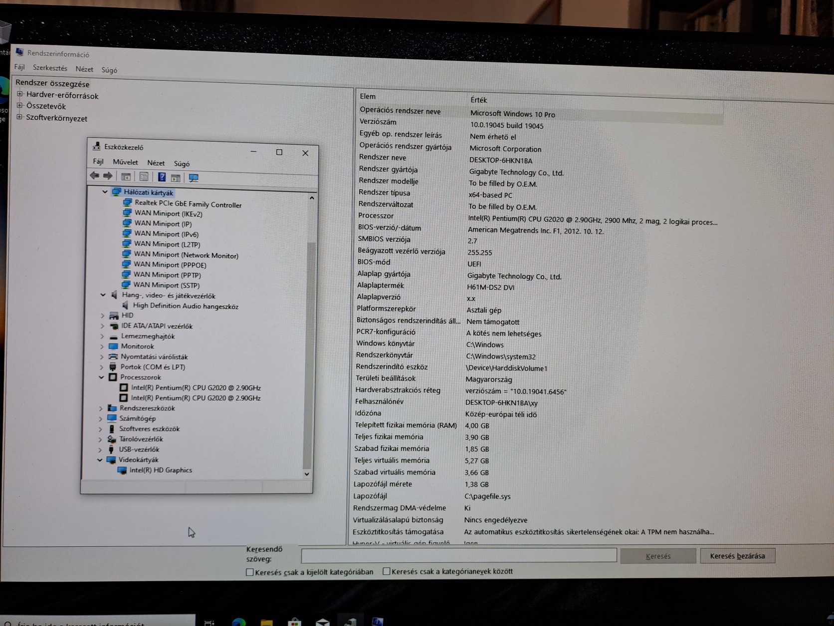 Gigabyte alaplap CPU G2020, RAM