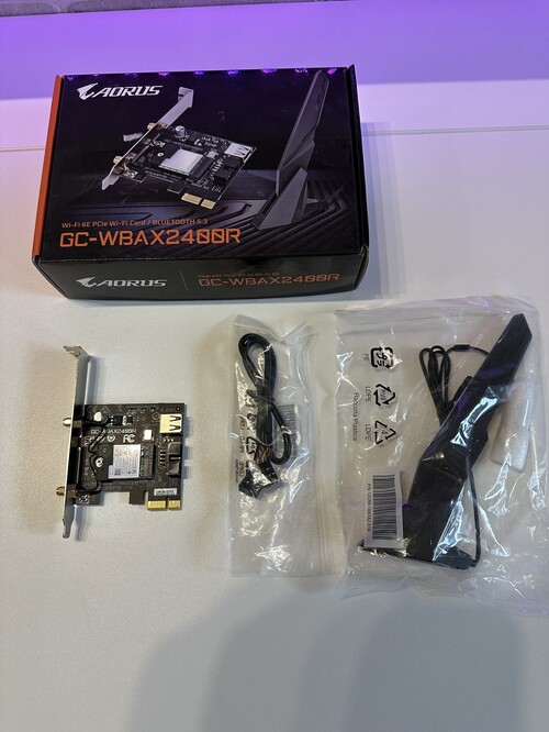 Eladó egy újszerű Gigabyte AORUS GC-WBAX2400R PCIe kártya, Wi-Fi 6 + Bluetooth 5.3 (Intel AX200)