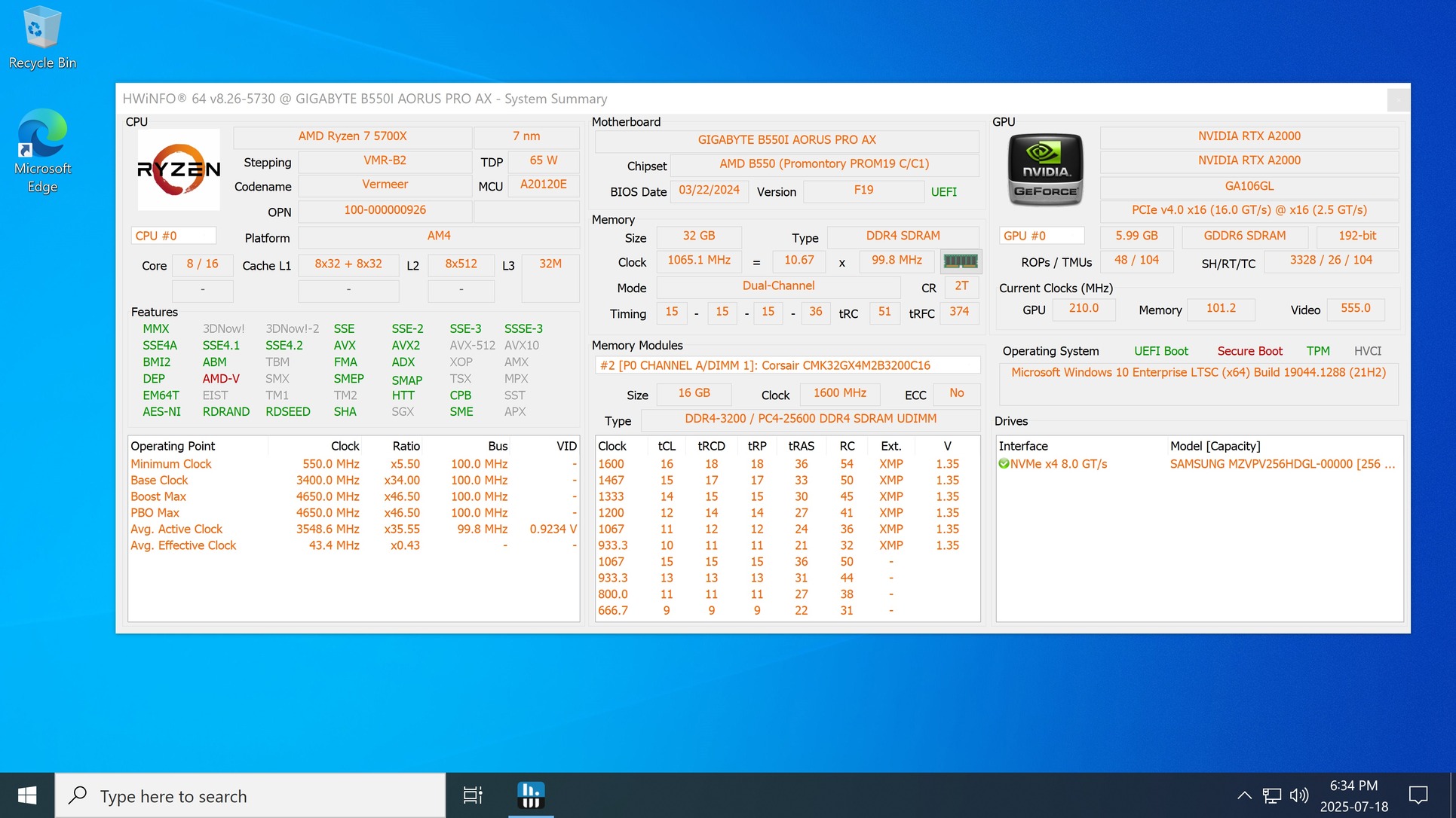 Gigabyte B550i, Ryzen 5700x, 32GB