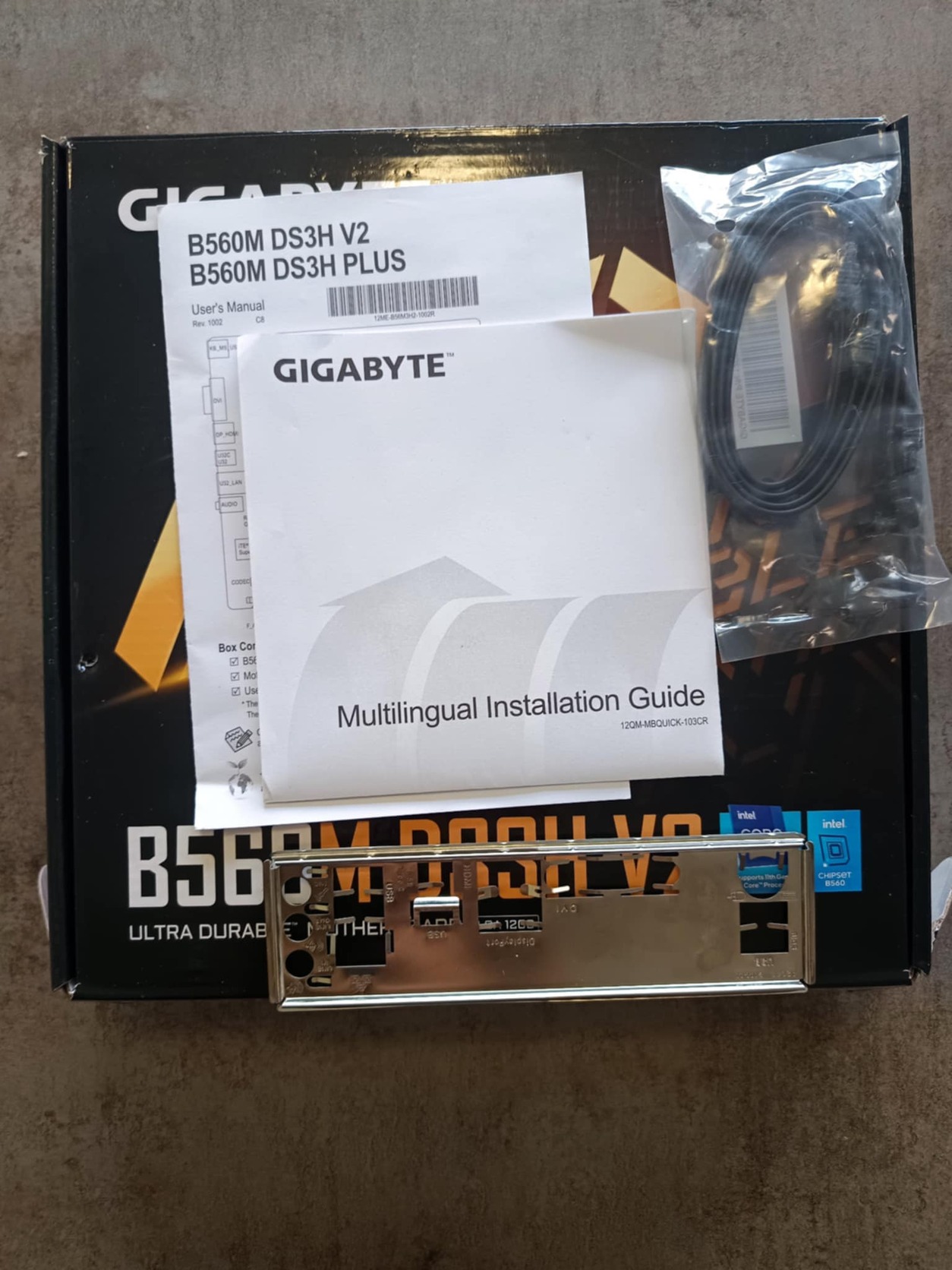 Doboza,papírjai,2 Sata kábel,shield tartozék.