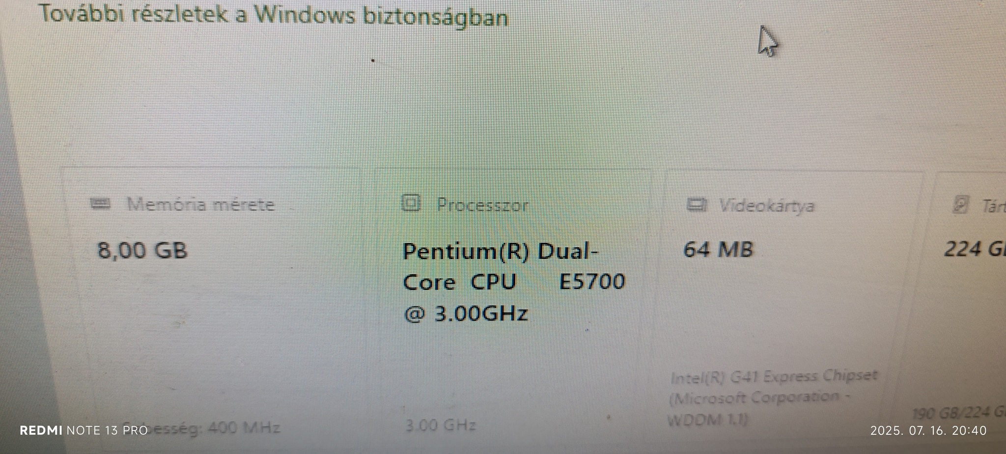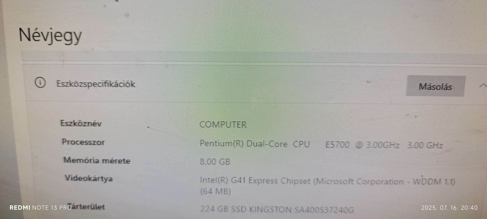 Képek között az adatok a gépről.