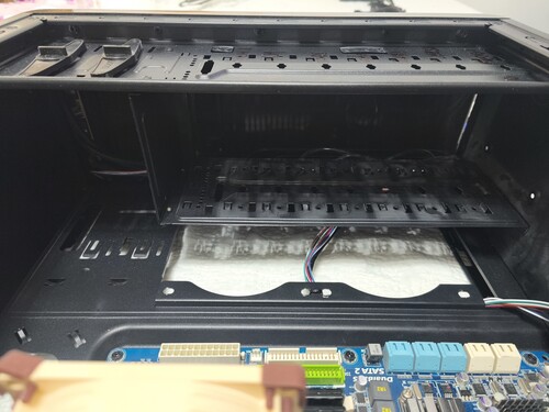 A képen látható összeállítás eladó. Otthoni átmeneti NAS szerverként müködött vagy legalább is valami olyas féle ként. De most le lett cserélve egy rendes NAS-ra így értelmét vesztette. A ház nagyon jól szellőztethető, hogy a HDD-k ne melegedjenek.