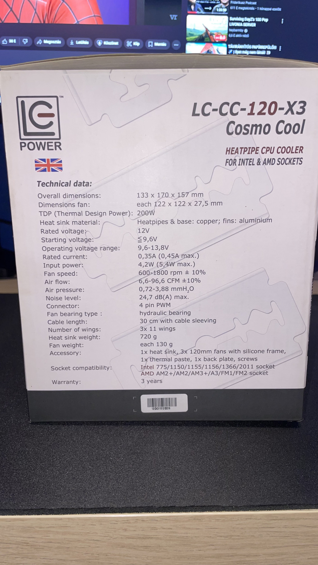A hűtő: LC-Power Cosmo Cool 120mm (LC-CC-120-X3)