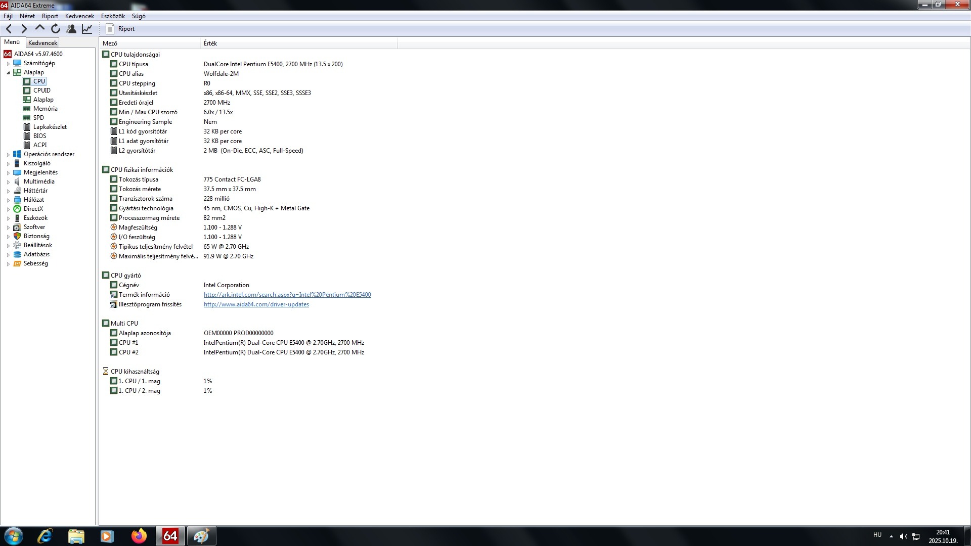 E5400 2.7GHz/2Mb/800 + gyári hűtő