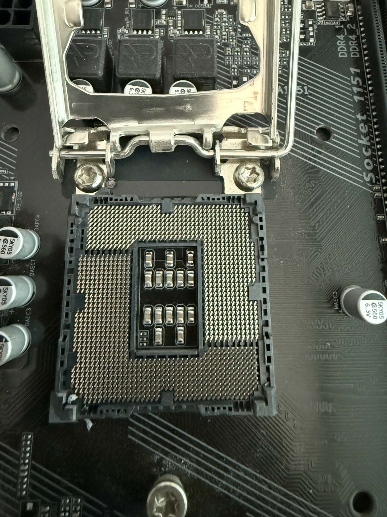 -CPU foglalat külön fotózva, nincsennek ferde pinek