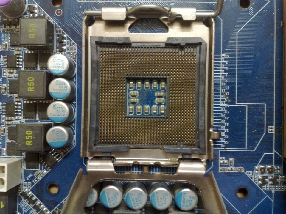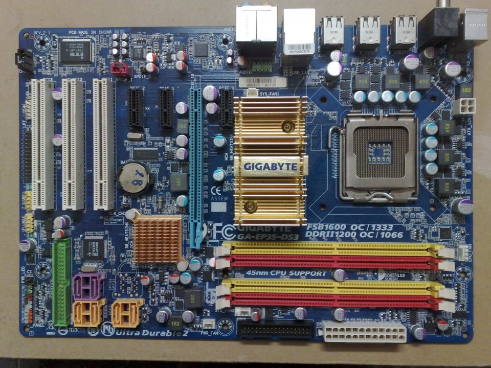 Gigabyte GA-EP35-DS3 Rev:2.1 alaplap. Proci felőli memória slot nem szuperál egy érintkező hiánya miatt. 3-6GB ram így is pakolható bele, ami elég is szokott lenni. Minden egyéb rendben működik. A procifoglalat nincs kivágva és egészséges.