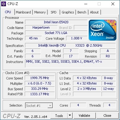 Xeon X3353: 4 mag, 2,5 GHz, 6 Mb L2 cache, 1333 MHz FSB.