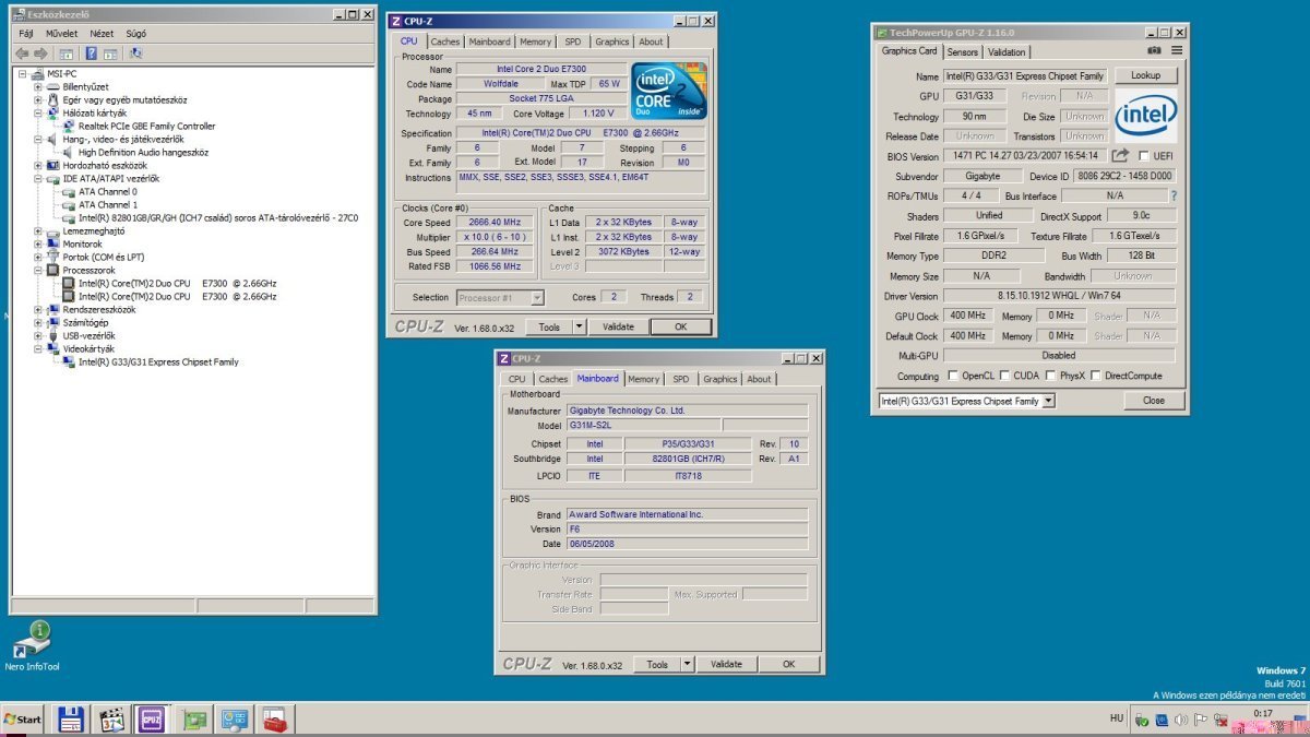 Gigabyte GA-G31M-S2L alaplap + Core2 Duo E7300 cpu + hűtő