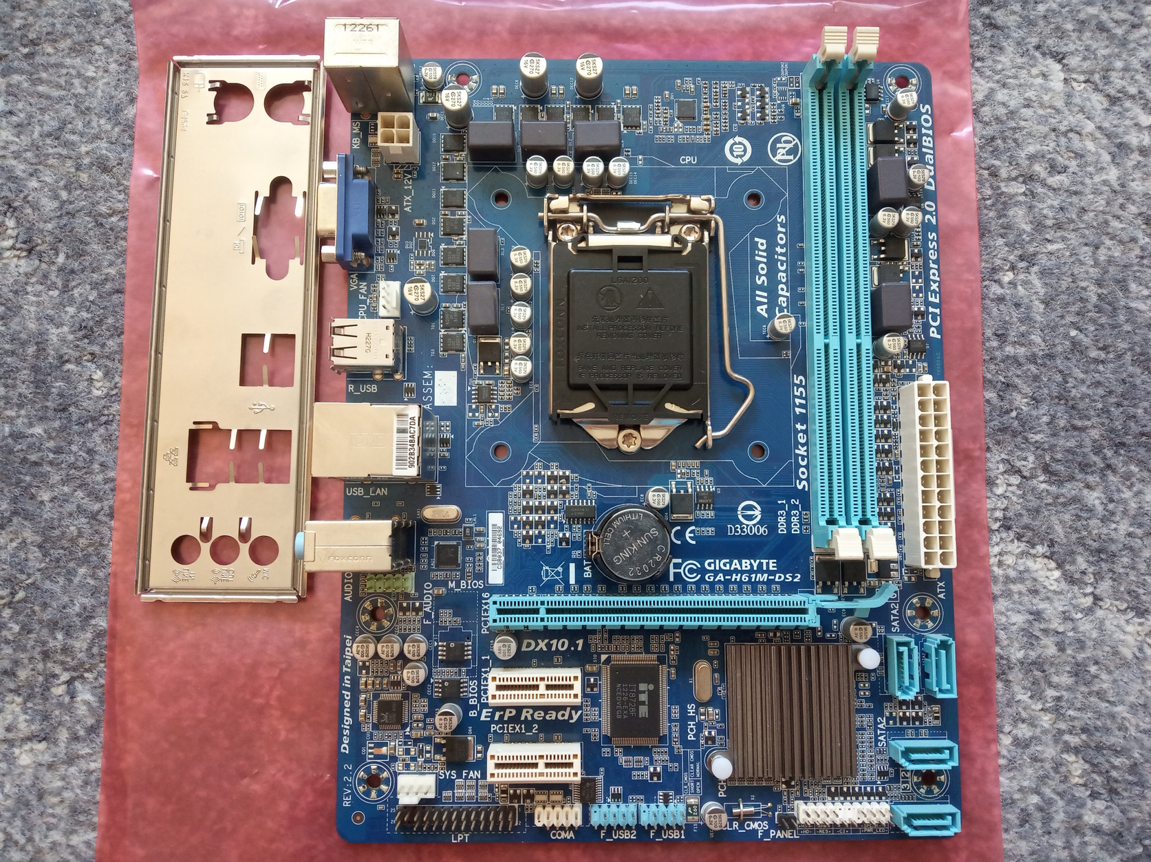 Eladó a címben említett GIGABYTE GA-H61M-DS2 (rev 2.2) socket 1155-ös alaplap hátlapjával (IO shield) együtt.