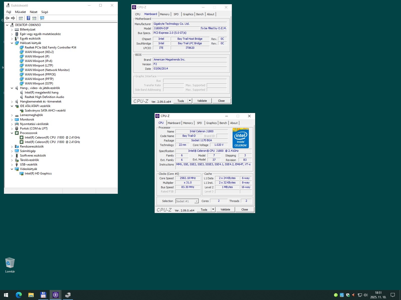 - integrált Intel Celeron J1800 mobil processzor (2,41 - 2,58 GHz, 2 mag + HD Graphics, alacsony fogyasztás TDP: 10W)