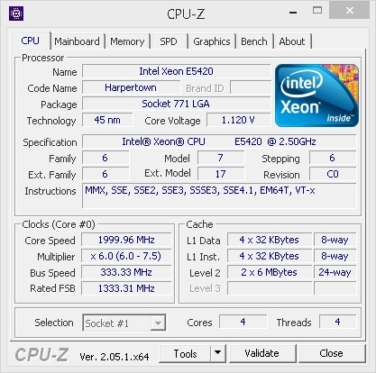 Intel Xeon E5420: 4 mag; 2,5 GHz; 12 MB L2 cache; 1333 MHz FSB.