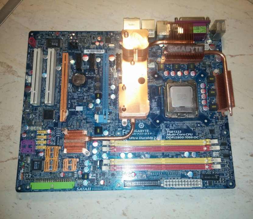 Eladó Gigabyte GA-P35-DS4 típusú alaplap Core2 Duo E8500 processzorral.