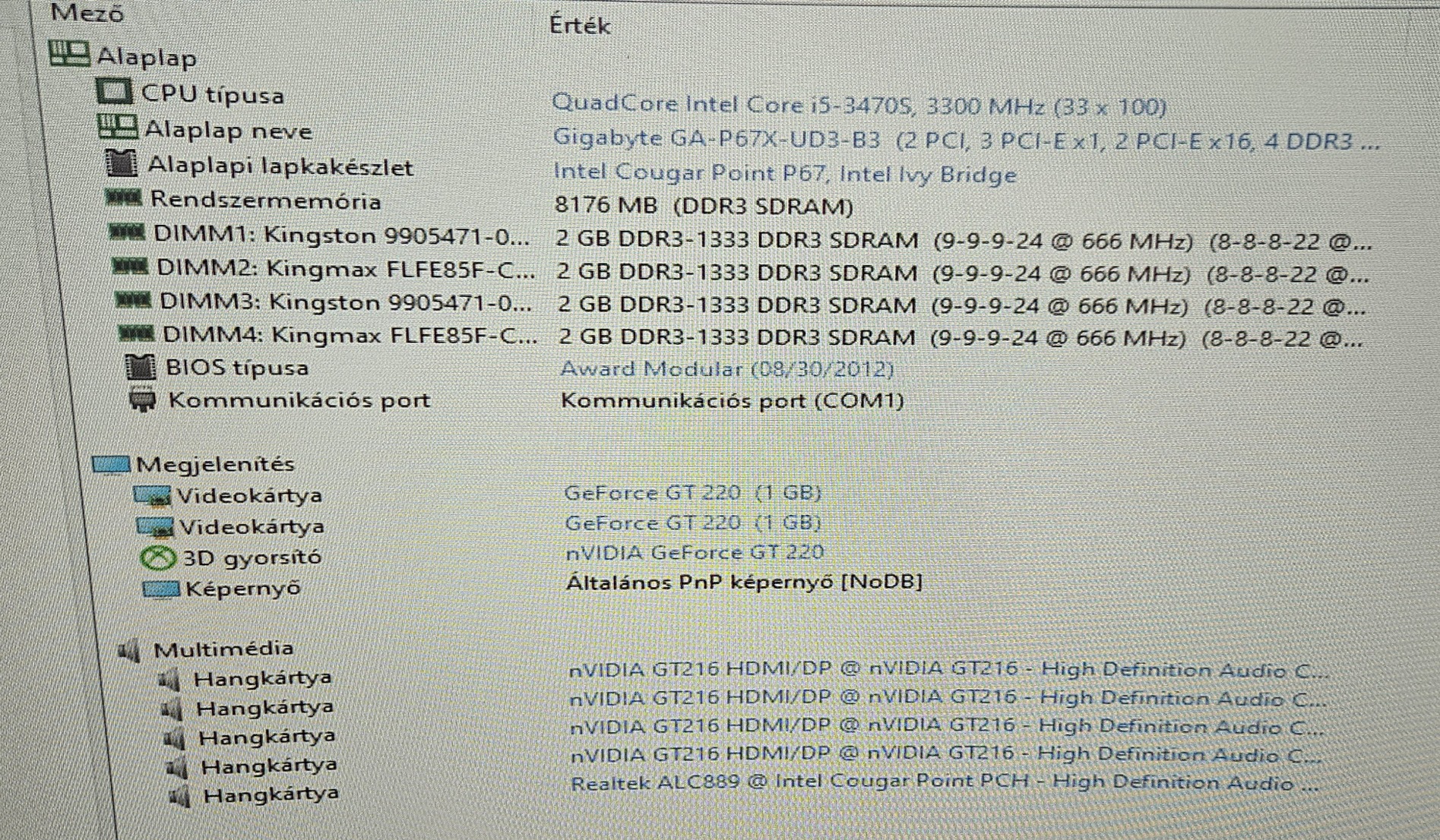Ha kell az egész ami a képen látható 12 ezer. [i5-3470S (4/4, 2900MHz/3600MHz), 4x2 GB DDR3 (Kingston/Kingmax), WD 120 GB SSD, Geforce GT220 1GB.