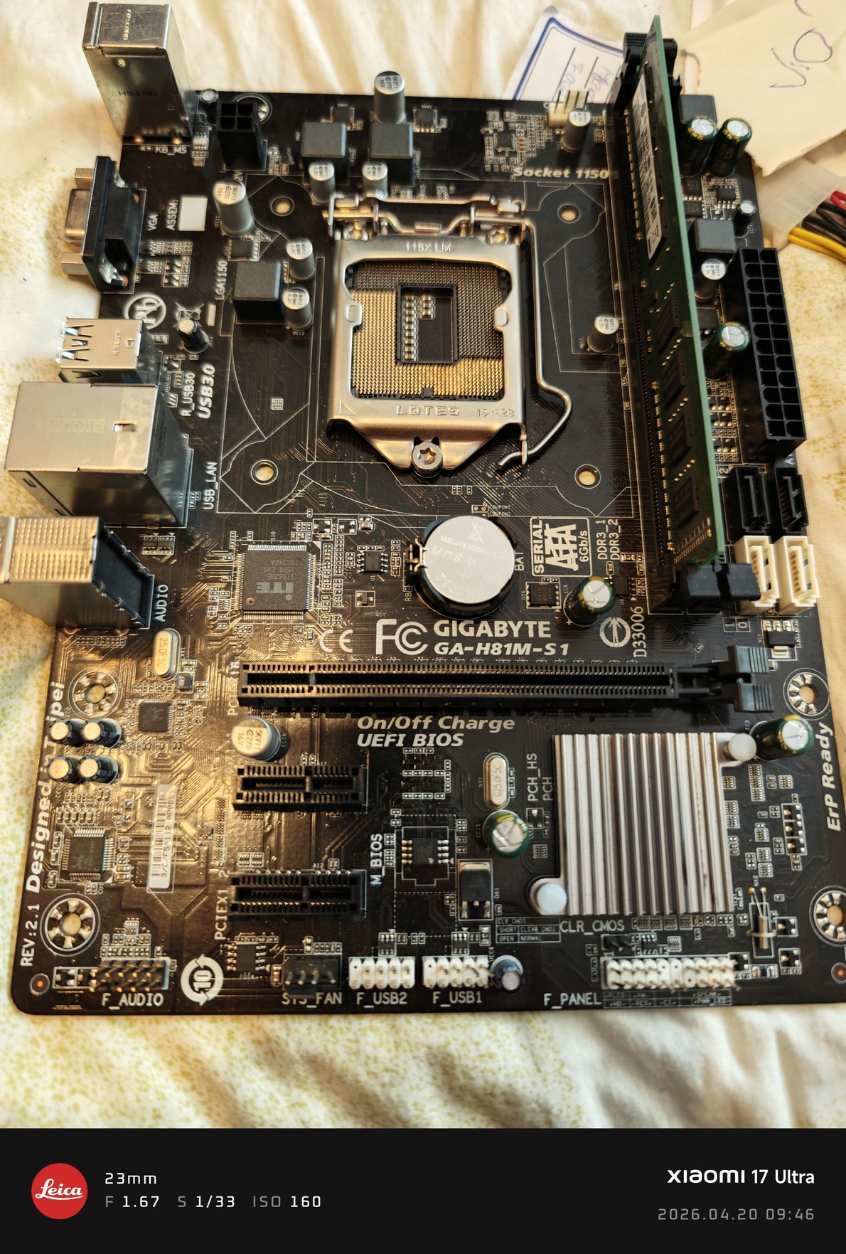 Lga 1150 es alaplap + hátlapi lemeze is megvan+ 2gb ddr3 memoria.
