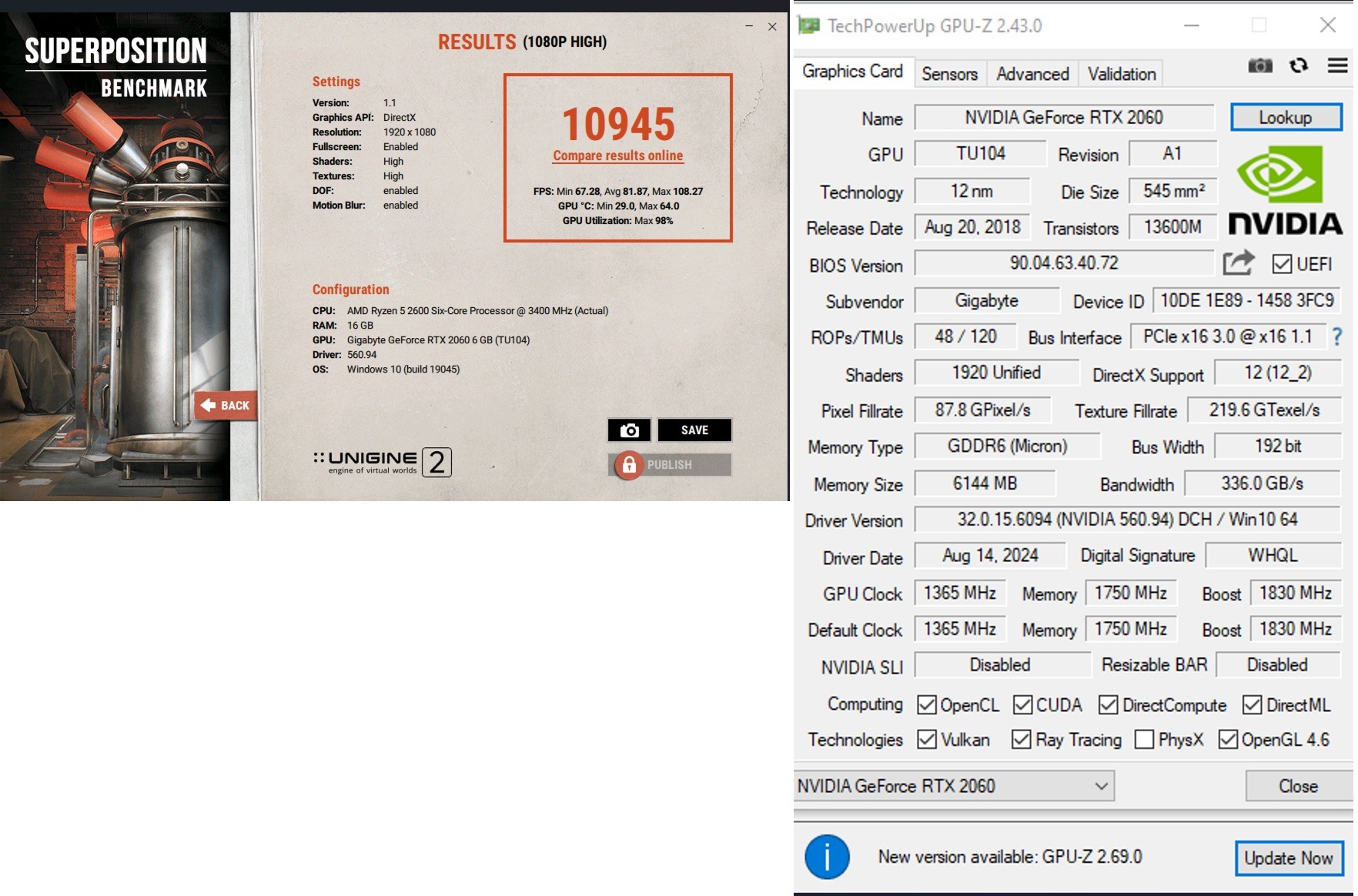 Gigabyte Gaming OC Pro RTX 2060 6GB