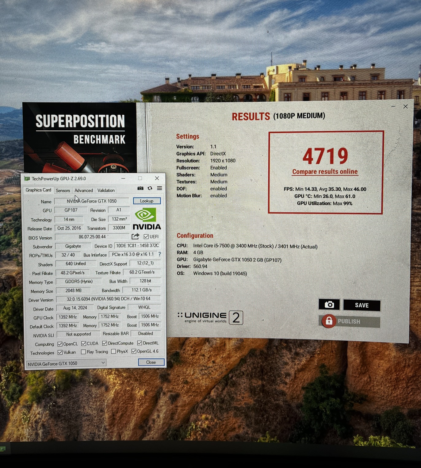 – Benchmark: Unigine Superposition – 4719 pont (1080p Medium)