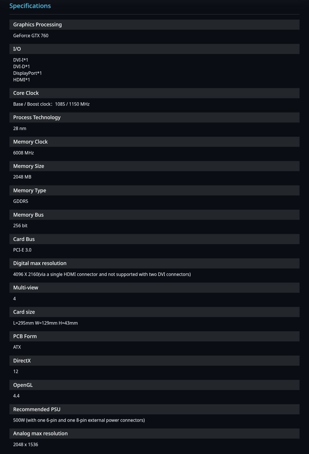 GIGABYTE GeForce GTX 760 OC 2GB