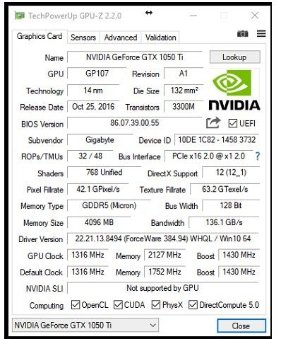 Gigabyte GeForce® GTX 1050 Ti Windforce OC 4G