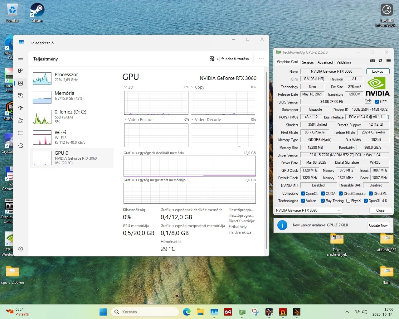 Eladó egy hibátlan működésú, és újszerű Gigabyte GeForce RTX 3060 12GB videókártya.