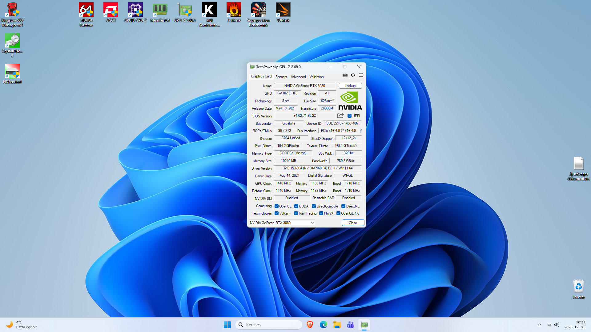 Videókártya: GIGABYTE GeForce RTX 3080 10GB OC GDDR6X 320bit