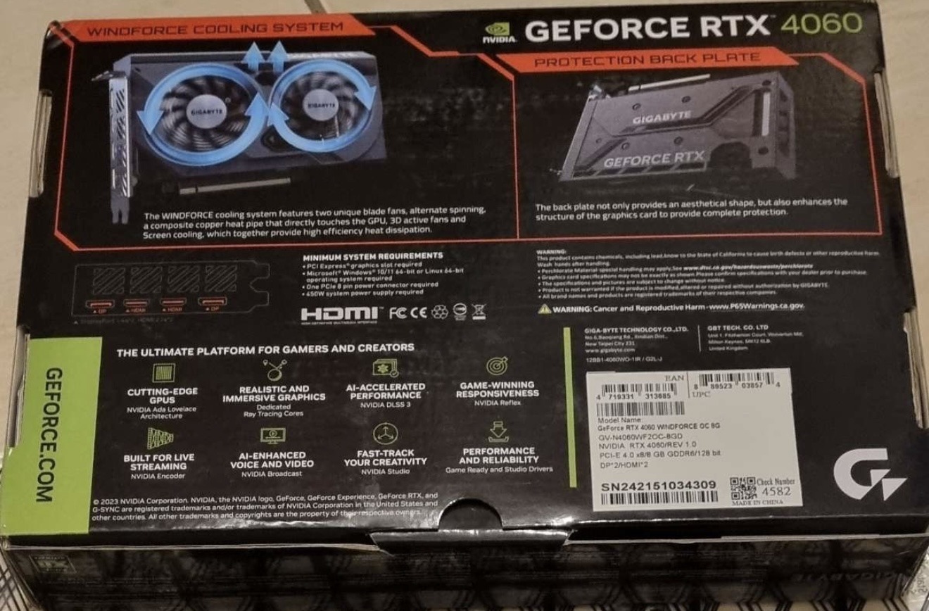 Gigabyte Gforce RTX 4060OC 8Gb GDDR6