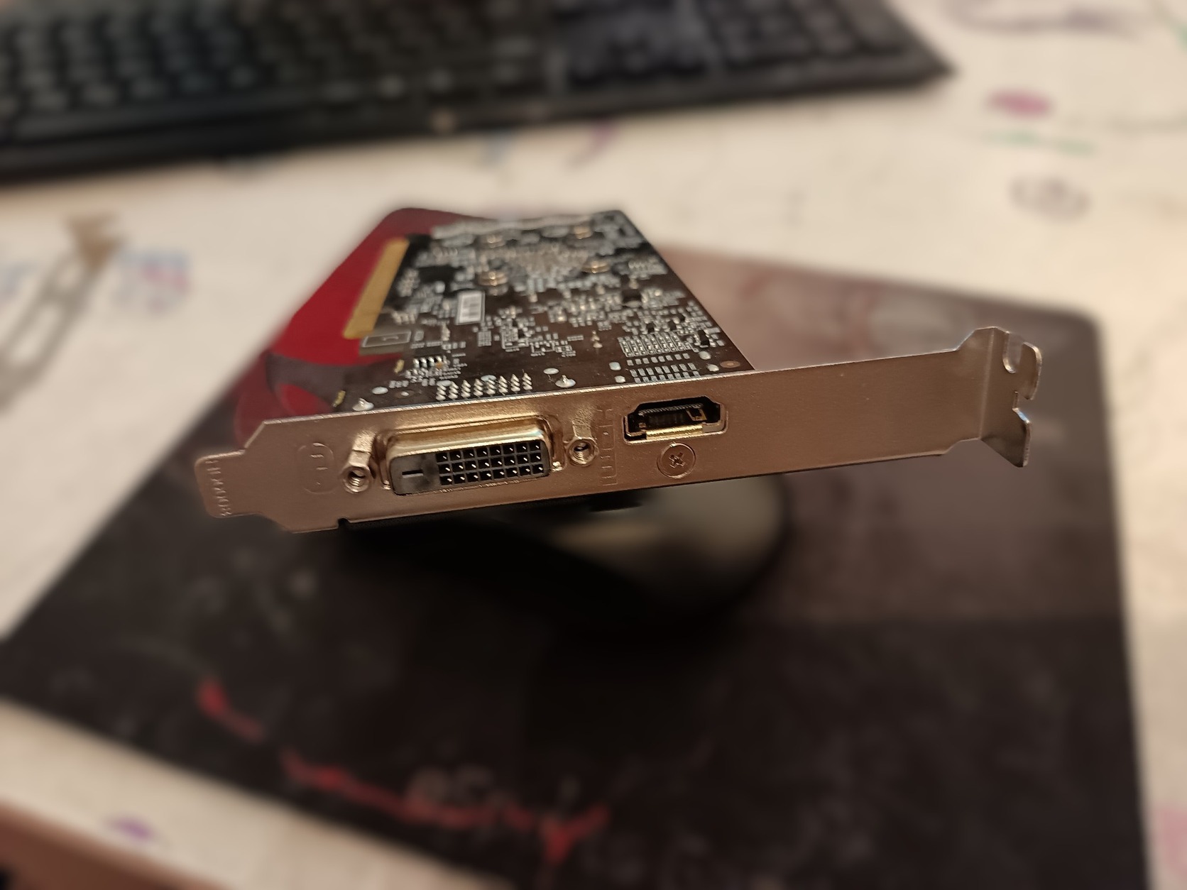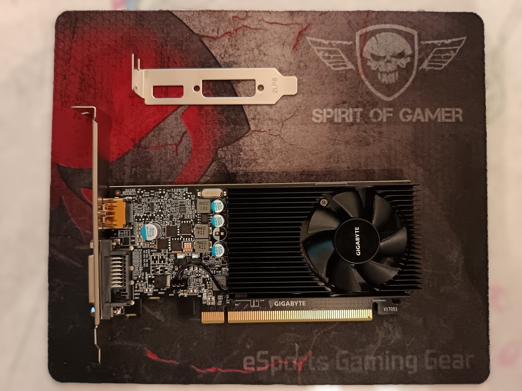 Kicsi, stabil kártya, normál méretű házban volt használva, megfelelő szellőzéssel. GDDR5 memóriával szerelt, teljesítménye +100% a DDR4 kártyákhoz viszonyítva. Alapszintű játékkal simán megbirkózik. Maga a kártya, LP és normál méretű hátlap, egyéb kiegészítője nincsen.
