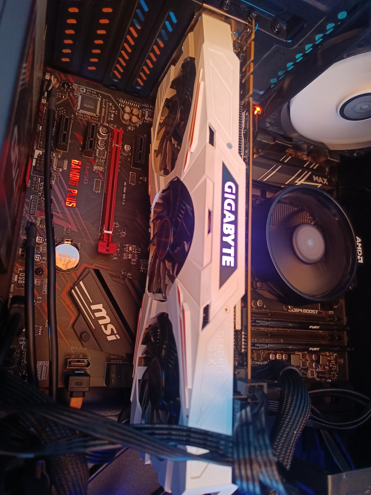Fehér ritkább kivitel, oldalsó GIGABYTE logó színátmenetes világítással.