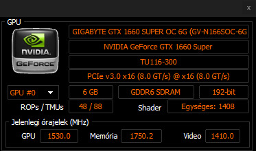 Grafikus chip: GeForce® GTX 1660 SUPER™