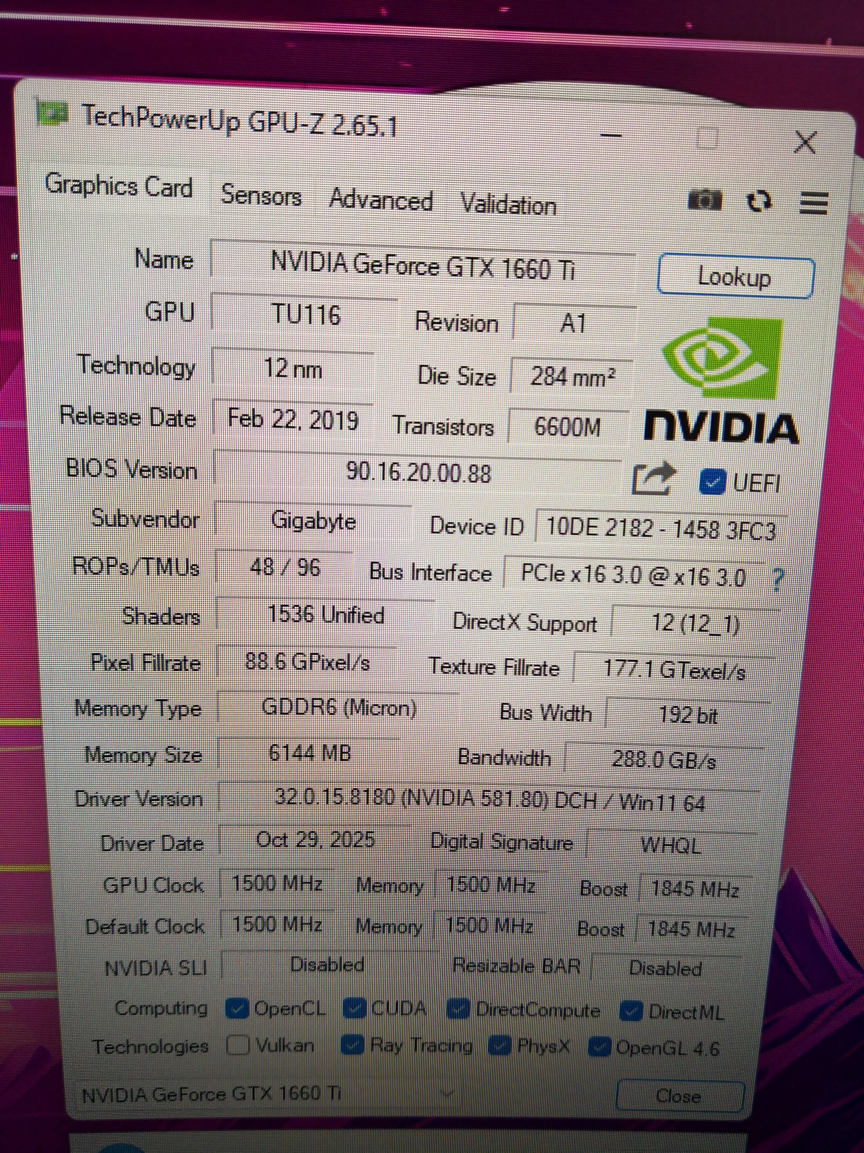 Gigabyte GTX 1660ti 6gb