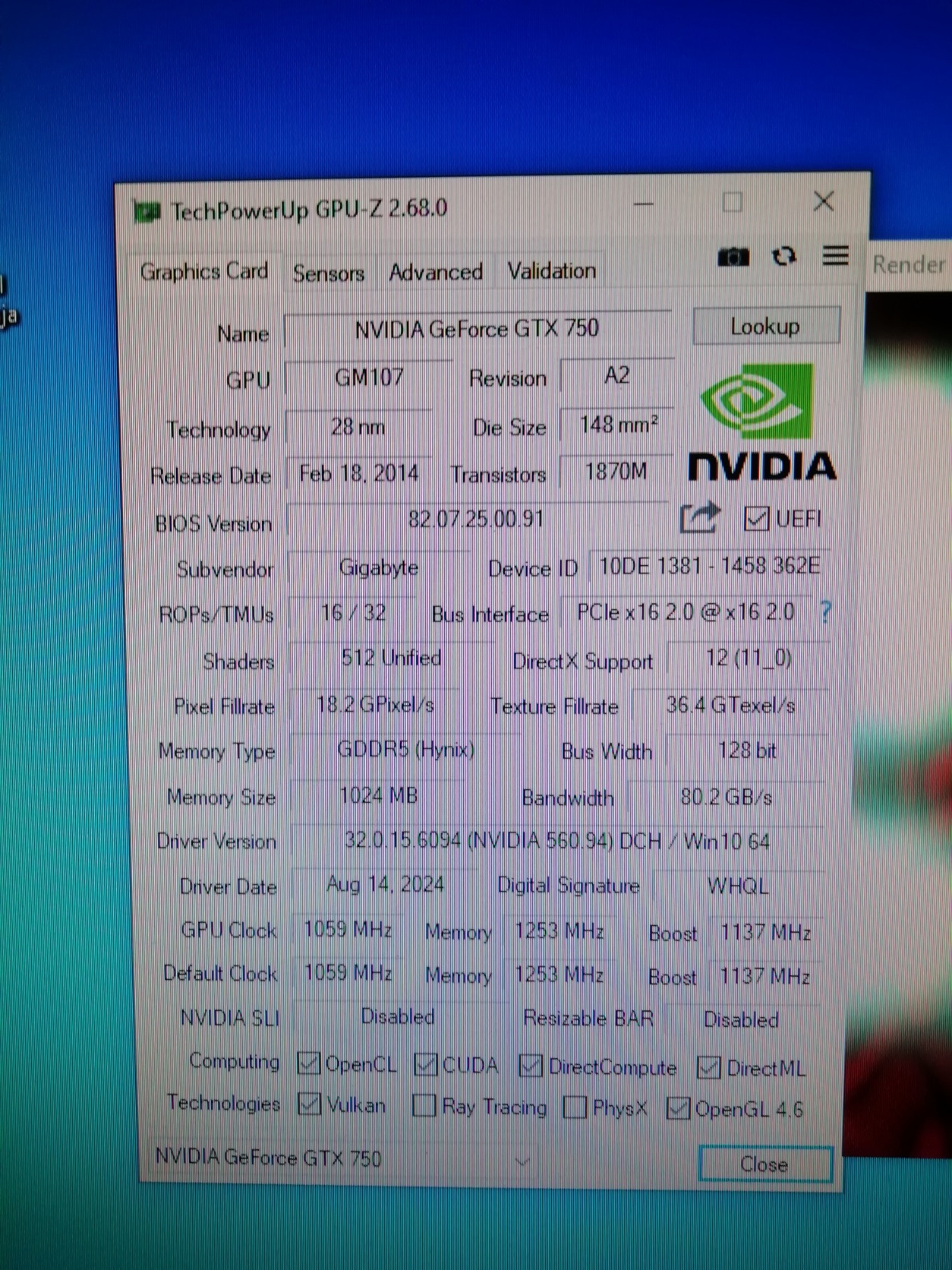 Gigabyte GTX 750 1GB