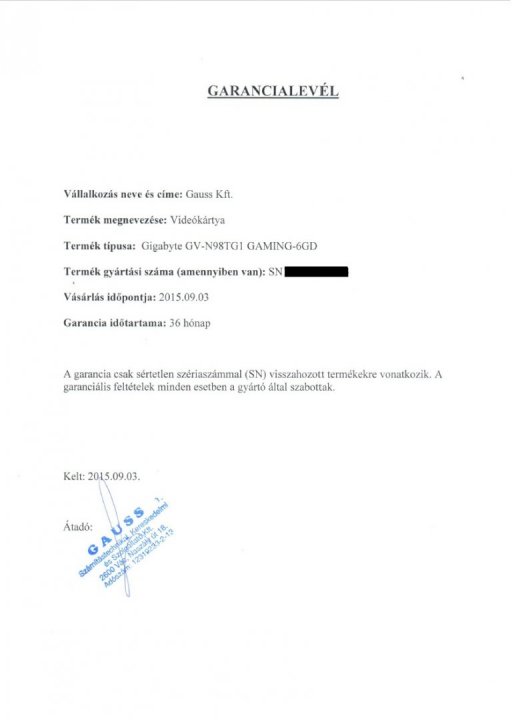 Mint ahogy a garancialevélen is látható 2018.09.03-ig garanciális.