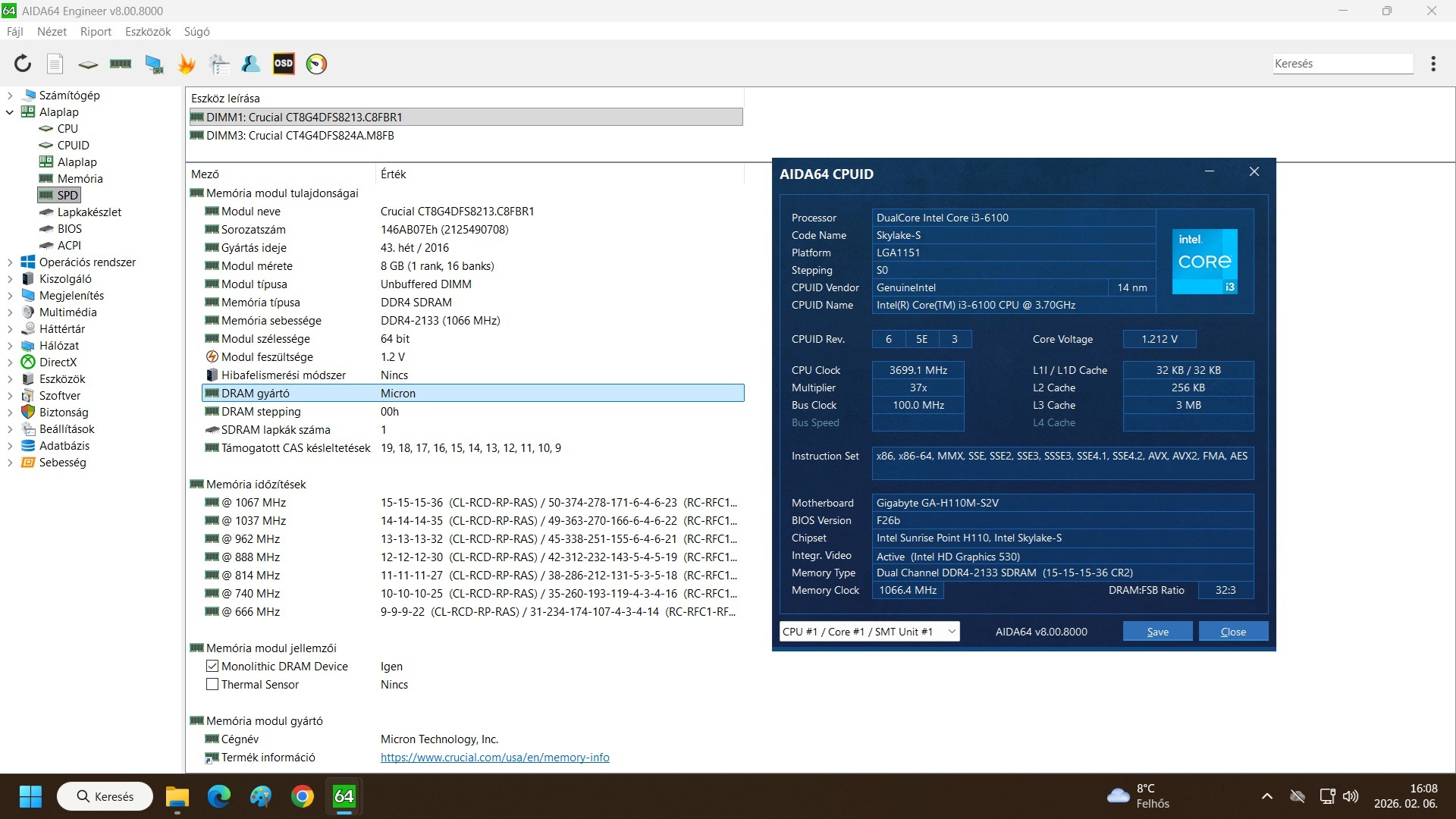 Gigabyte H110M-S2V + i3 6100