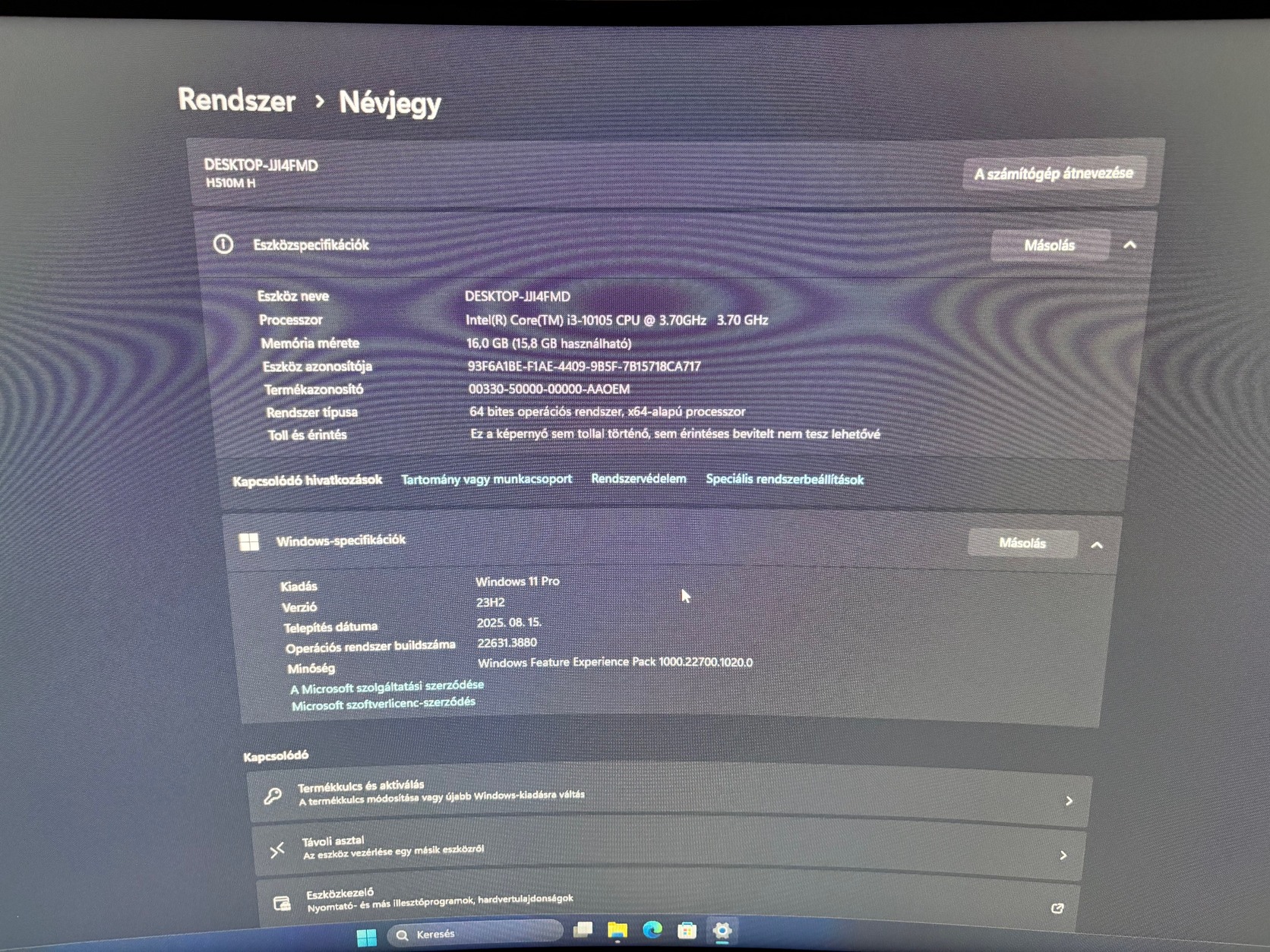 Az eladó PC paraméterei: