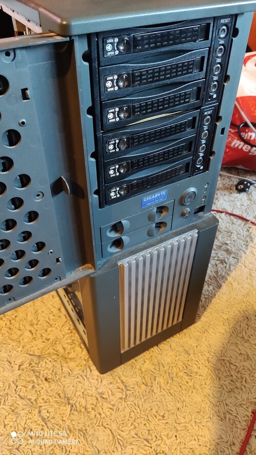 Eladó Gigabyte ház + 6 fiókos 3,5" hdd rack ajándék táppal használati karcok vannak rajta.