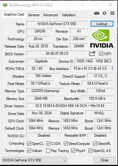 Gigabyte NVIDIA GeForce GTX 950