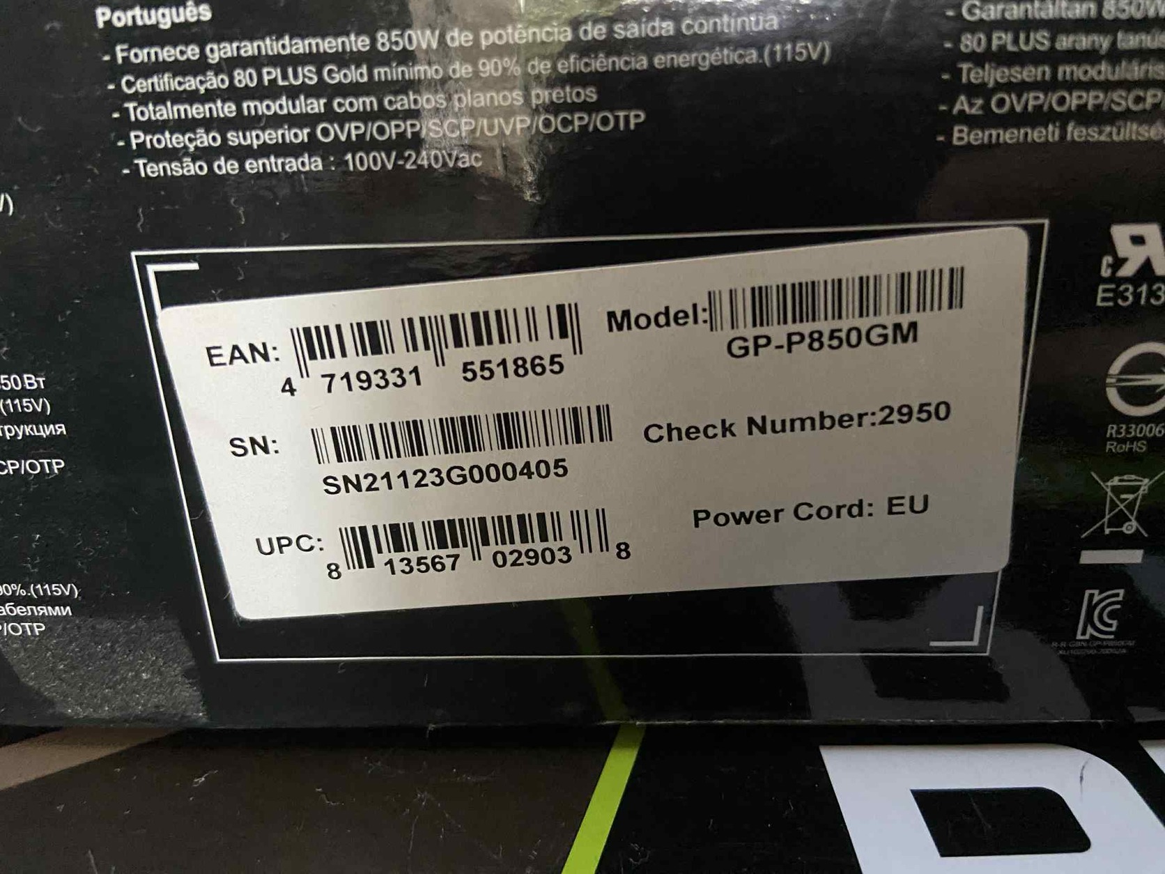 Gigabyte P850GM Tápegység