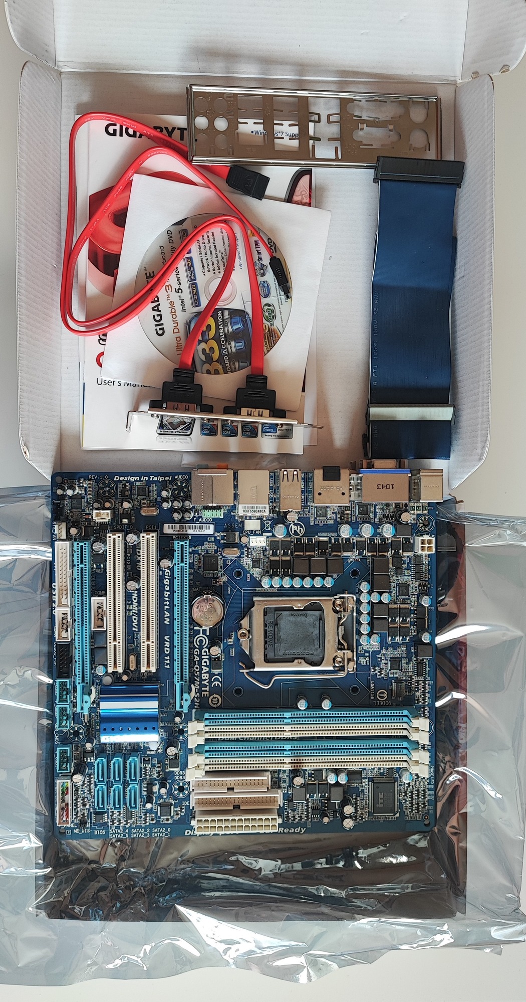 Eladó Gigabyte Q57M-S2H alaplap szép állapotban, gyári komplett dobozával és tartozékaival.