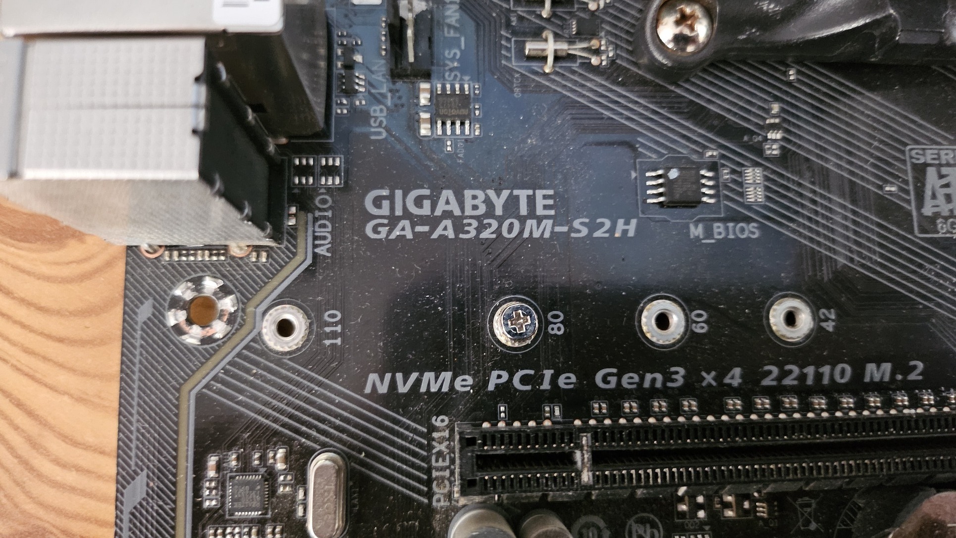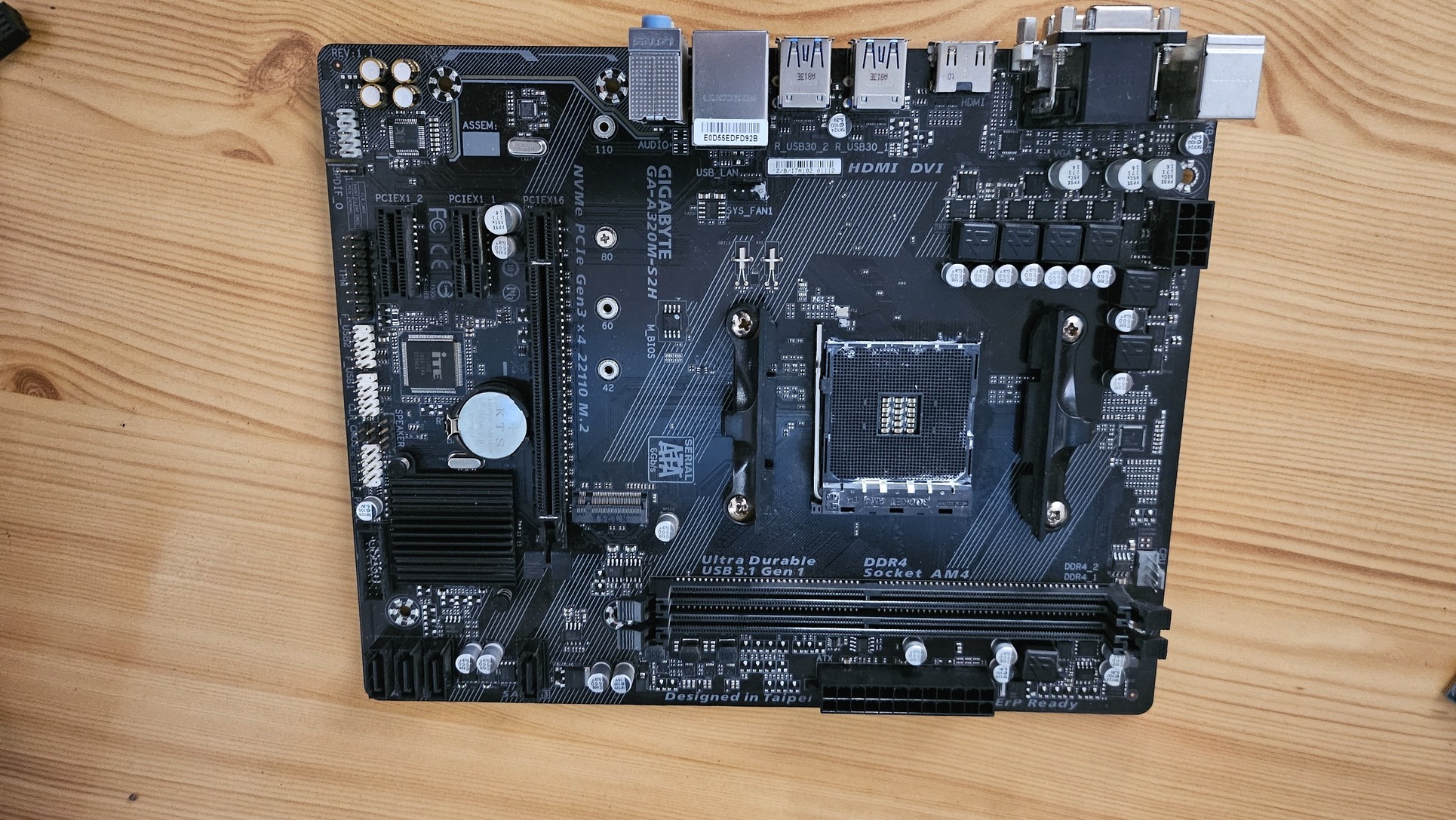 Gigabyze GA-A320M-S2H + IO Shield.