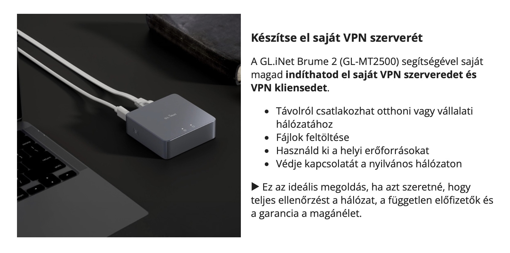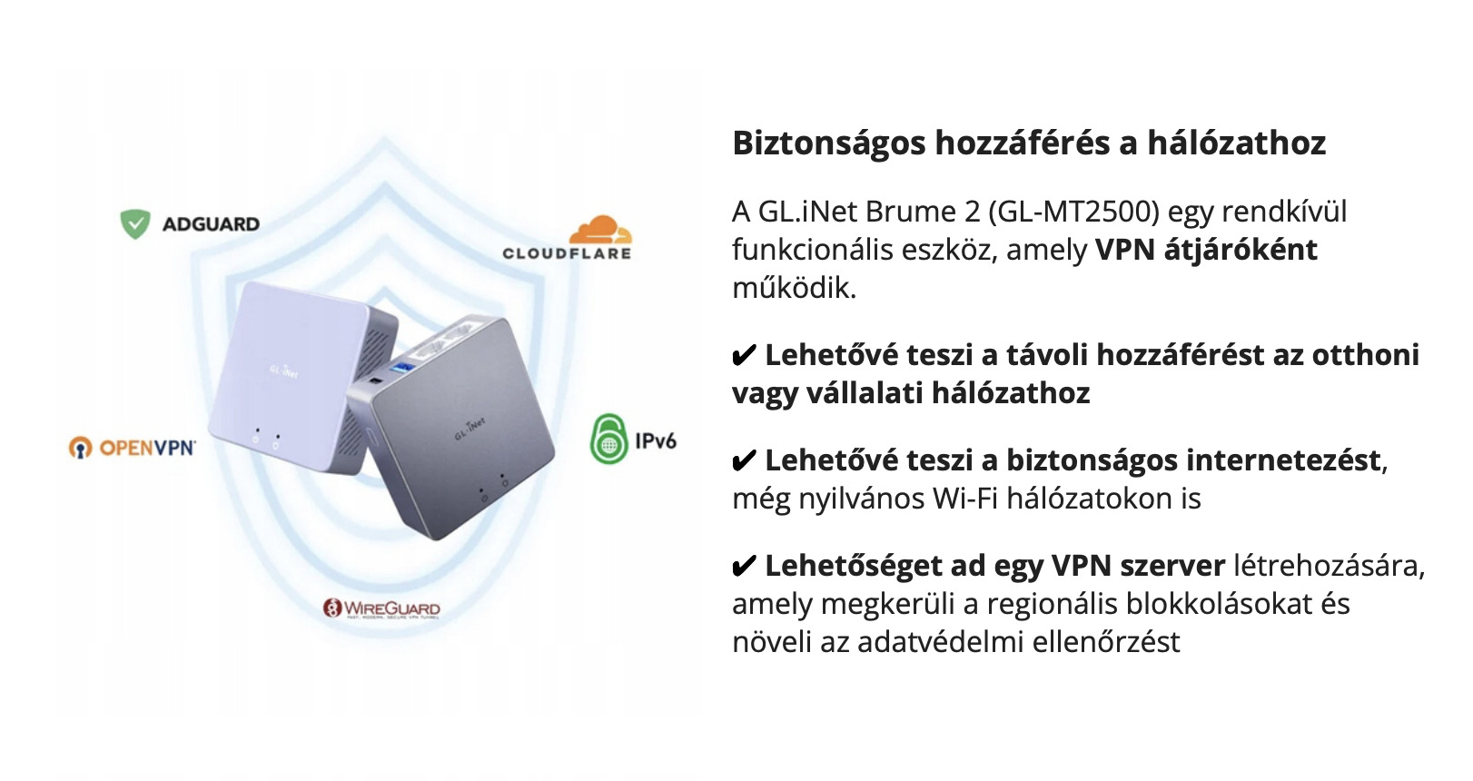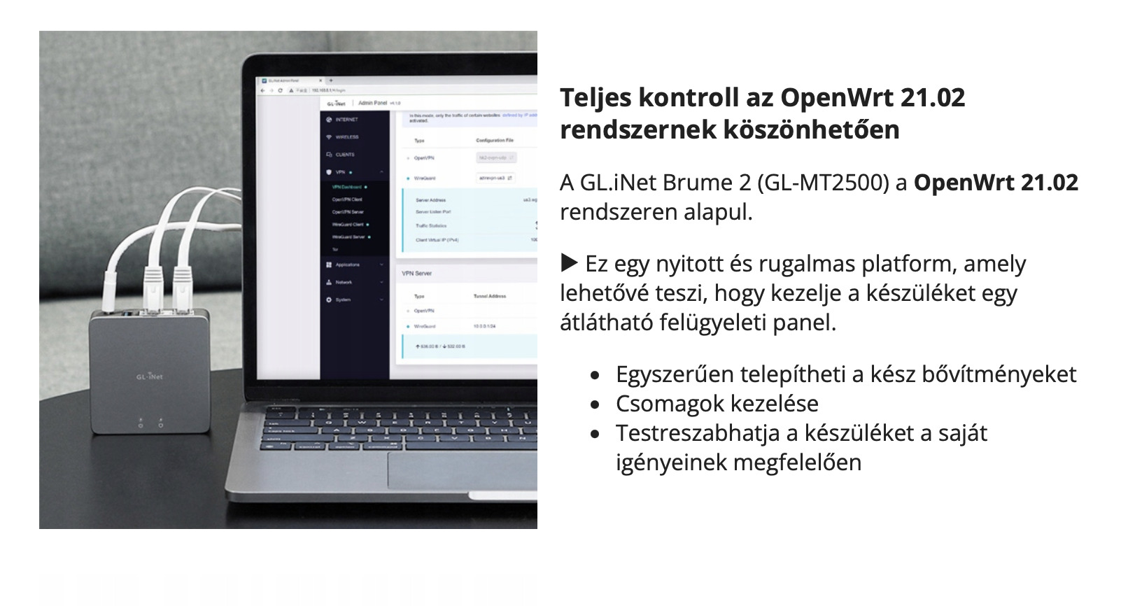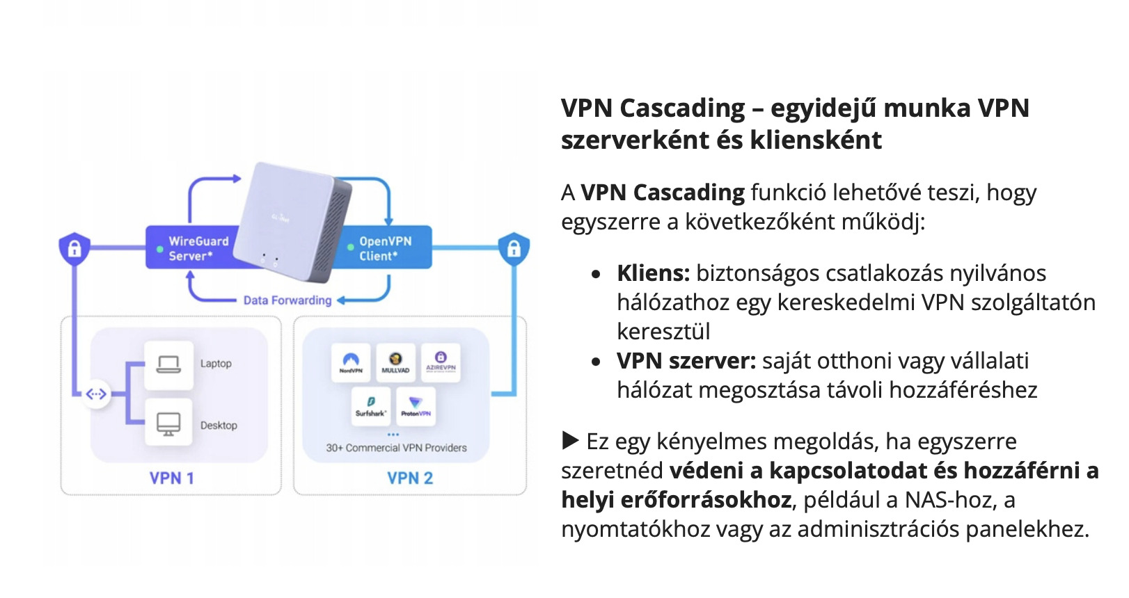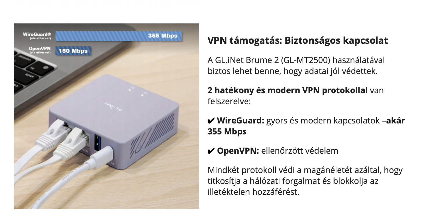 ✅ VPN támogatás (WireGuard® és OpenVPN): biztonságos és privát kapcsolatok