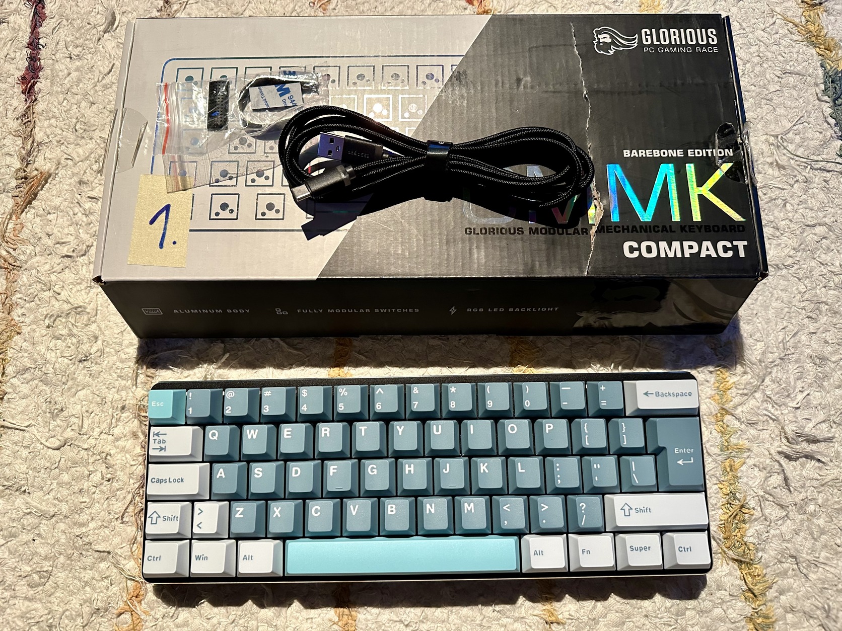 4.képen: Glorious GMMK RGB COMPACT, ANSI, Brown switch: 10.000ft (+ kupakokat adom hozzá a teljes szetthez)