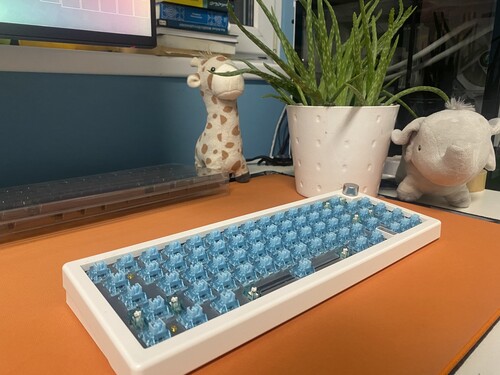 Eladó fent említett épített billentyűzetem. Amit tudni kell róla. GMK67, 65ös kiosztás. Nyilak, pg up/down + delete gomb megtalálható rajta az összes 60% kiosztású gombok mellett. Akko Pro V3 Cream Blue switchek.