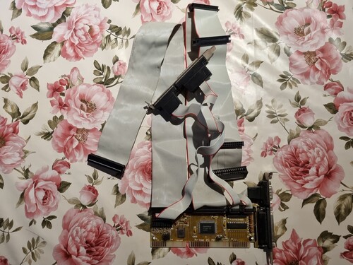 Kivezetésekkel, IDE és FDD kábellel.