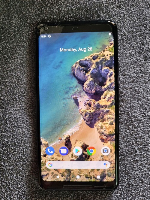 Eladó a képen látható alkatrésznek szánt Google Pixel 2 XL típusú készülék.