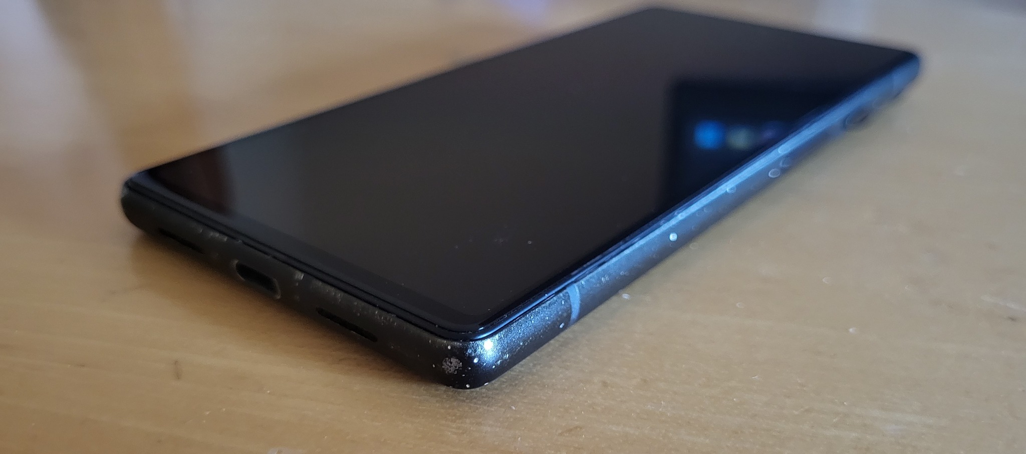 Viseltes kerettel, két karccal a képernyőn amit fotóztam, kizárólag kikapcsolt képernyőnél látszik, a vezeték nélküli töltés a hátlap csere során megsérült így nem működik.