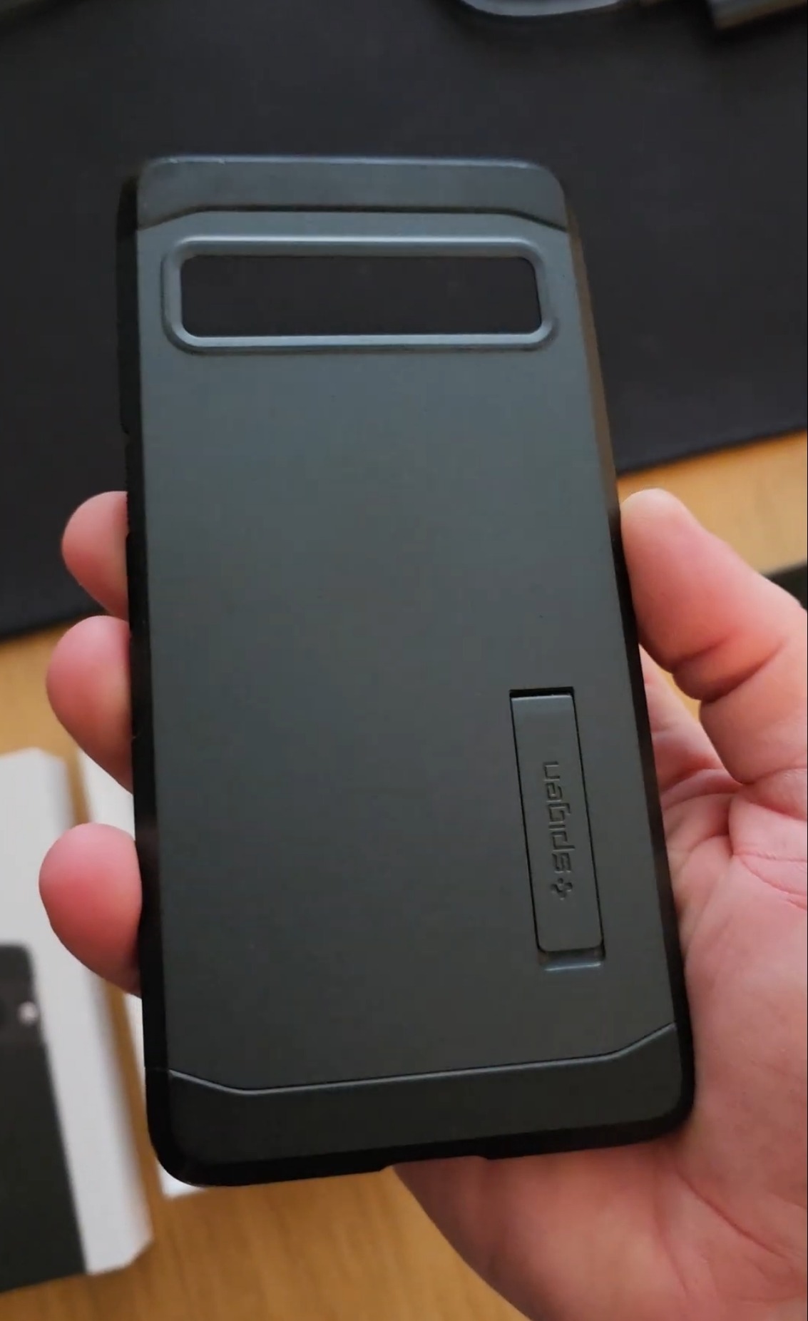 Tartozéka két fekete tok, amiből az egyik egy jobban párnázott Spigen, míg a másik egy vékony, hajlékonyabb.