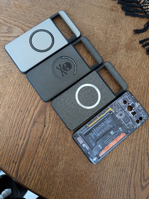 Jelenleg az egész telefonon egy QSKINZ szürke skin van a védelemért. Kérésre levehető.